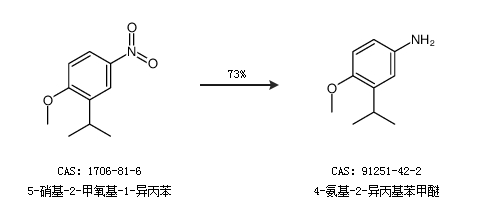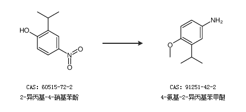 1.通過5-硝基-2-甲氧基-1-異丙苯合成4-氨基-2-異丙基苯甲醚,收率約73%;