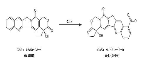 1.通過喜樹堿合成魯比替康,收率約19%;