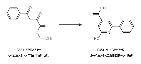 1.通過4-苯基-2,4-二氧丁酸乙酯合成2-羥基-6-苯基吡啶-4-甲酸