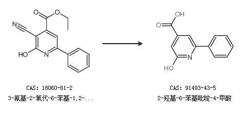 2.通過3-氰基-2-氧代-6-苯基-1,2-二氫吡啶-4-羧酸乙酯合成2-羥基-6-苯基吡啶-4-甲酸
