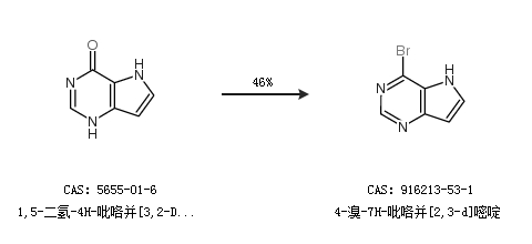 2.通過1,5-二氫-4H-吡咯并[3,2-D]嘧啶-4-酮合成4-溴-7H-吡咯并[2,3-d]嘧啶,收率約46%;
