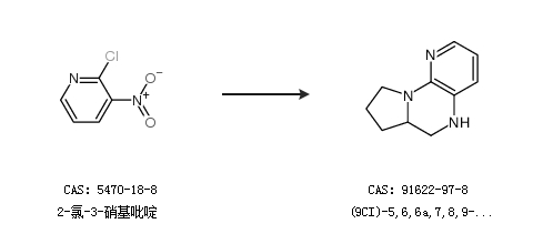 2.通過(guò)2-氯-3-硝基吡啶合成(9CI)-5,6,6a,7,8,9-六氫吡啶并[3,2-e]吡咯并[1,2-a]吡嗪