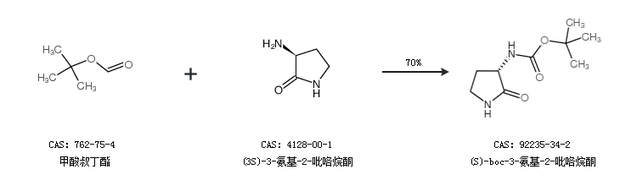 2.通過甲酸叔丁酯和(3S)-3-氨基-2-吡咯烷酮合成(S)-boc-3-氨基-2-吡咯烷酮,收率約70%;