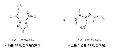 1.通過4-硝基-1H-吡唑-3-羧酸甲酯合成4-氨基-1-乙基-1H-吡唑-3-羧酸甲酯