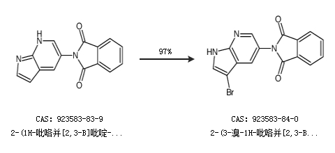 1.通過2-(1H-吡咯并[2,3-B]吡啶-5-基)-異吲哚-1,3-二酮合成2-(3-溴-1H-吡咯并[2,3-B]吡啶-5-基)-1H-異吲哚-1,3(2H)-二酮,收率約97%;