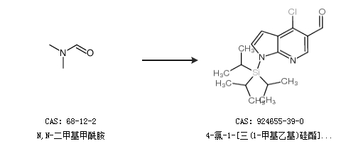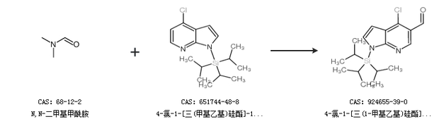 2.通過N,N-二甲基甲酰胺和4-氯-1-[三(甲基乙基)硅酯]-1H-吡咯并[2,3-B]吡啶合成4-氯-1-[三(1-甲基乙基)硅酯]-1H-吡咯并[2,3-B]吡啶-5-甲醛