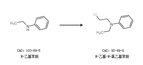 1.通過N-乙基苯胺合成N-乙基-N-氯乙基苯胺