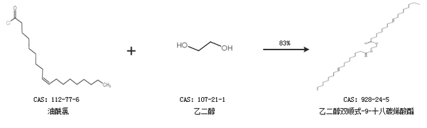 1.通過油酰氯和乙二醇合成乙二醇雙順式-9-十八碳烯酸酯,收率約83%;
