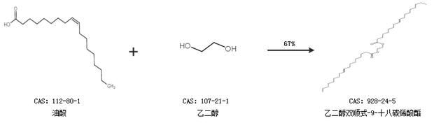 2.通過油酸和乙二醇合成乙二醇雙順式-9-十八碳烯酸酯,收率約67%;