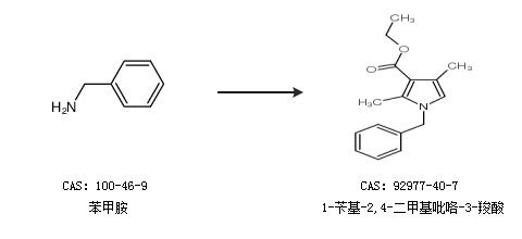 1.通過苯甲胺合成1-芐基-2,4-二甲基吡咯-3-羧酸