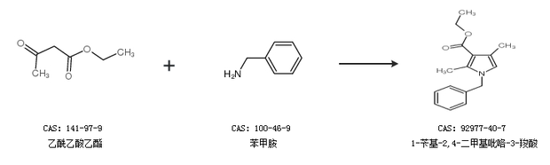 2.通過乙酰乙酸乙酯和苯甲胺合成1-芐基-2,4-二甲基吡咯-3-羧酸