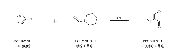 1.通過3-溴噻吩和哌啶-1-甲醛合成3-溴噻吩-2-甲醛,收率約83%;