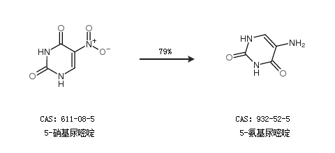 1.通過5-硝基尿嘧啶合成5-氨基尿嘧啶,收率約79%;