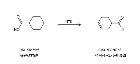 1.通過環(huán)己烷羧酸合成環(huán)己-3-烯-1-甲酰氯,收率約87%;