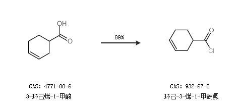 2.通過3-環(huán)己烯-1-甲酸合成環(huán)己-3-烯-1-甲酰氯,收率約89%;