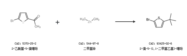 1.通過2-乙?;?5-溴噻吩和二甲基鋅合成2-溴-5-(1,1-二甲基乙基)-噻吩