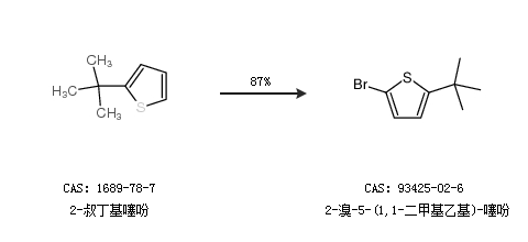 2.通過2-叔丁基噻吩合成2-溴-5-(1,1-二甲基乙基)-噻吩,收率約87%;