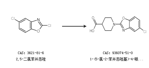 2.通過2,5-二氯苯并惡唑合成1-(5-氯-2-苯并惡唑基)-4-哌啶羧酸