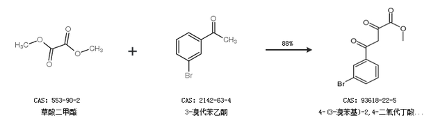 1.通過草酸二甲酯和3-溴代苯乙酮合成4-(3-溴苯基)-2,4-二氧代丁酸甲酯,收率約88%;