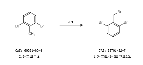 1.通過2,6-二溴甲苯合成1,3-二溴-2-(溴甲基)苯,收率約99%;