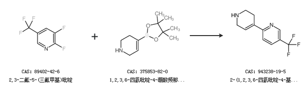 1.通過2,3-二氟-5-(三氟甲基)吡啶和1,2,3,6-四氫吡啶-4-硼酸頻那醇酯合成2-(1,2,3,6-四氫吡啶-4-基)-5-(三氟甲基)吡啶