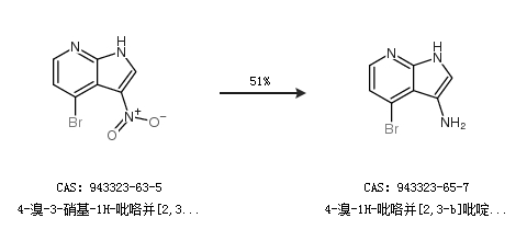 1.通過(guò)4-溴-3-硝基-1H-吡咯并[2,3-B]吡啶合成4-溴-1H-吡咯并[2,3-b]吡啶-3-胺,收率約51%;