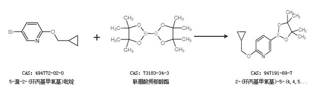 1.通過5-溴-2-(環(huán)丙基甲氧基)吡啶和聯(lián)硼酸頻那醇酯合成2-(環(huán)丙基甲氧基)-5-(4,4,5,5-四甲基-1,3,2-二雜氧戊硼烷-2-基)吡啶