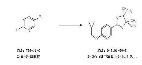 2.通過2-氟-5-溴吡啶合成2-(環(huán)丙基甲氧基)-5-(4,4,5,5-四甲基-1,3,2-二雜氧戊硼烷-2-基)吡啶