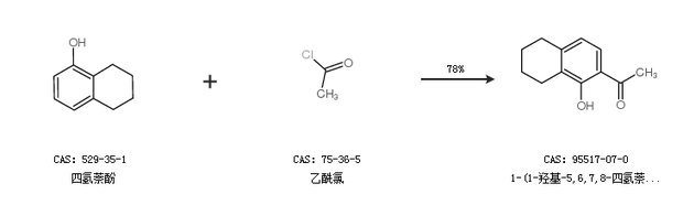 1.通過(guò)四氫萘酚和乙酰氯合成1-(1-羥基-5,6,7,8-四氫萘-2-基)乙酮,收率約78%;