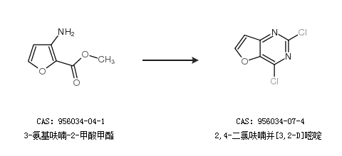 2.通過3-氨基呋喃-2-甲酸甲酯合成2,4-二氯呋喃并[3,2-D]嘧啶