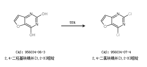 1.通過2,4-二羥基呋喃并[3,2-D]嘧啶合成2,4-二氯呋喃并[3,2-D]嘧啶,收率約55%;