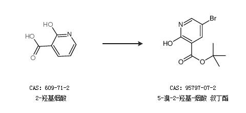 1.通過(guò)2-羥基煙酸合成5-溴-2-羥基-煙酸 叔丁酯