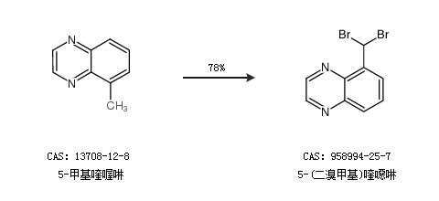 1.通過5-甲基喹喔啉合成5-(二溴甲基)喹噁啉,收率約78%;