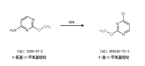 1.通過(guò)4-氨基-2-甲氧基嘧啶合成4-溴-2-甲氧基嘧啶,收率約89%;