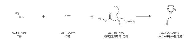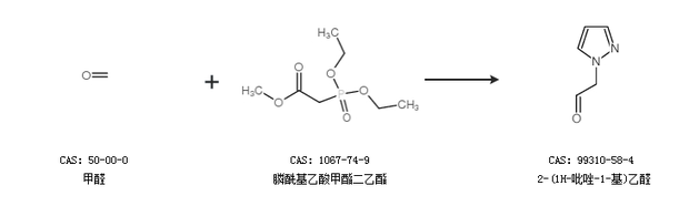 2.通過甲醇、甲醛和膦?;宜峒柞ザ阴ズ铣?-(1H-吡唑-1-基)乙醛
