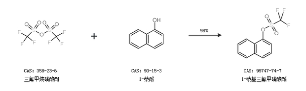 1.通過(guò)三氟甲烷磺酸酐和1-萘酚合成1-萘基三氟甲磺酸酯,收率約98%;