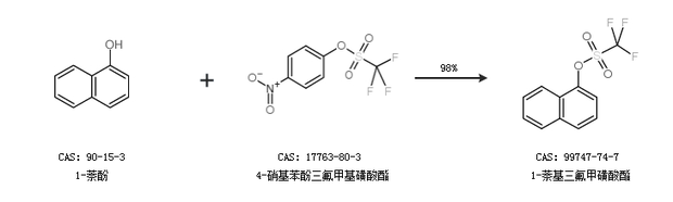 2.通過(guò)1-萘酚和4-硝基苯酚三氟甲基磺酸酯合成1-萘基三氟甲磺酸酯,收率約98%;