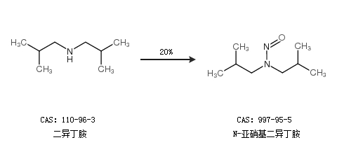 1.通過二異丁胺合成N-亞硝基二異丁胺,收率約20%;