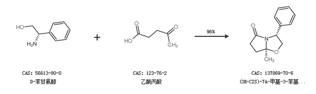 1.通過D-苯甘氨醇和乙酰丙酸合成(3R-CIS)-7A-甲基-3-苯基四水吡啶-[2,1-B]唑-5(6H)-酮,收率約96%;