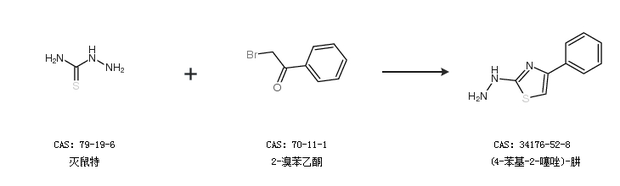 1.通過(guò)滅鼠特和2-溴苯乙酮合成(4-苯基-2-噻唑)-肼