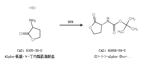 2.通過Alpha-氨基-γ-丁內(nèi)酯氫溴酸鹽合成(S)-(-)-alpha-(Boc-氨基)-gamma-丁酸內(nèi)酯,收率約98%;
