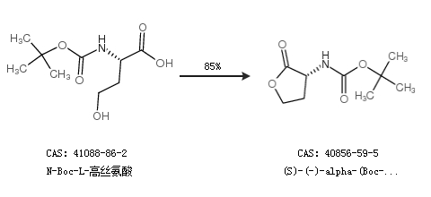 1.通過N-Boc-L-高絲氨酸合成(S)-(-)-alpha-(Boc-氨基)-gamma-丁酸內(nèi)酯,收率約85%;