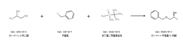 2.通過(S)-(+)-1,2-丙二醇、芐基氯和叔丁基二甲基氯硅烷合成(S)-(+)-1-芐氧基-2-丙醇