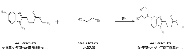 2.通過(guò)5-氨基-1-甲基-1H-苯并咪唑-2-丁酸乙酯和2-溴乙醇合成[1-甲基-2-(4’-丁酸乙酯基)-5-N, N-二(2’-羥基乙基)]-1H -苯并咪唑,收率約55%;