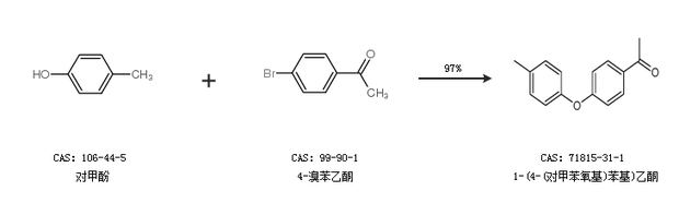 2.通過對甲酚和4-溴苯乙酮合成1-(4-(對甲苯氧基)苯基)乙酮,收率約97%;