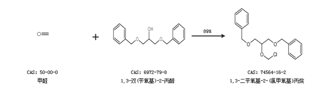 1.通過甲醛和1,3-雙(芐氧基)-2-丙醇合成1,3-二芐氧基-2-(氯甲氧基)丙烷,收率約89%;