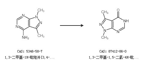 中文名稱(chēng) 1,3-二甲基-1,5-二氫-4H-吡唑并-[3,4-d]嘧啶-4-酮