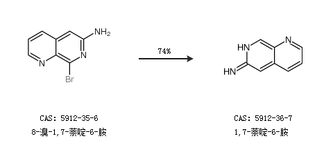 1.通過(guò)8-溴-1,7-萘啶-6-胺合成1,7-萘啶-6-胺,收率約74%;
