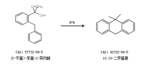 2.通過(2-芐基)-苯基-2-異丙醇合成10,10-二甲基蒽,收率約97%;