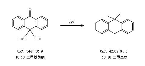 1.通過10,10-二甲基蒽酮合成10,10-二甲基蒽,收率約27%;